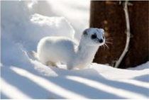Кроме того, многие звери меняют цвет шубки. Большинство животных, зимой светлеют, что помогает им маскироваться. Так маскируются под цвет снега горностай и ласка, у горностая кончик хвоста остаётся чёрным, а ласка становится совершенно белой. Белочка меняет шубку – на голубовато-серую, заяц-беляк рыжевато-серую окраску – на белую. Серый волк к зиме становится таким светлым, что в сумерках, когда он начинает свою охоту, его невозможно разглядеть.