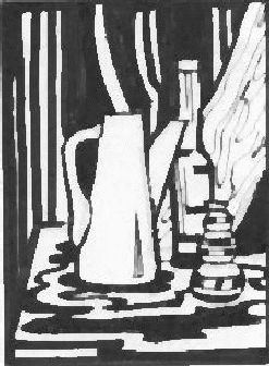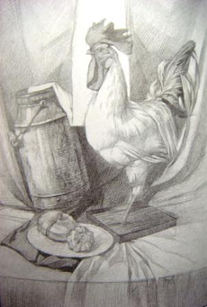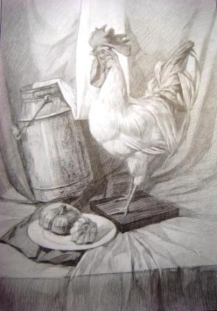 Натюрморт должен вызывать ощущение естественности и как бы незримого присутствия человека. В нем один предмет является главным объектом изображения - центром композиции. Этот предмет несет смысловую нагрузку. Остальные предметы натюрморта должны дополнять главный. Так как рисунок натюрморта выполняется в черно - белом варианте, особое значение имеет освещение. Оно должно быть контрастными рассеянным, но в любом случае, следует учитывать тональную разницу в окраске предметов, составляющих натюрморт. В ним не должны быть только темные или только светлые предметы. Необходимо сочетать различные тона, составляя контрастную тоновую гамму.