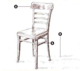 А Реалистичные очертания. Этот стул нарисован с помощью конструкционных линий и в полном соответствии с законами перспективы, поэтому изображенный предмет выглядит столь реалистично.