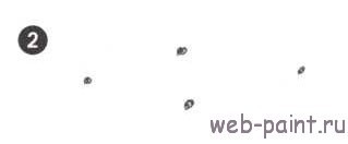 2. Поставьте палец посередине между этими точками и нарисуйте еще две: одну сверху и одну снизу от пальца. Теперь у вас есть две точки, расположенные далеко друг от друга, и две точки рядом посередине. Эти первые точки очень важны для правильного построения всего рисунка. Если они даже немного перекосятся, то весь рисунок «расплавится» как в микроволновой печи! Будьте очень аккуратны в расположении этих первых точек.