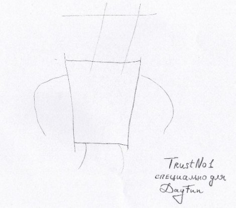 1. Сначала посередине листа нарисуй квадрат. Это туловище. Добавь деталей.
