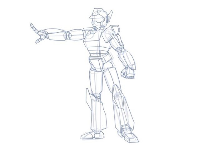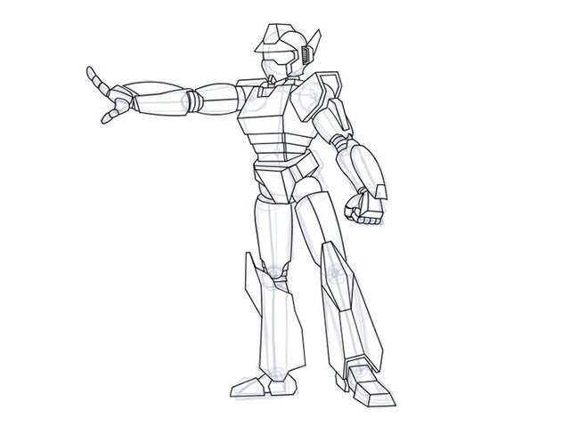 Шаг последний. Уберите все вспомогательные линии и обведите контуры робота. Вот как у Вас должно было получиться.