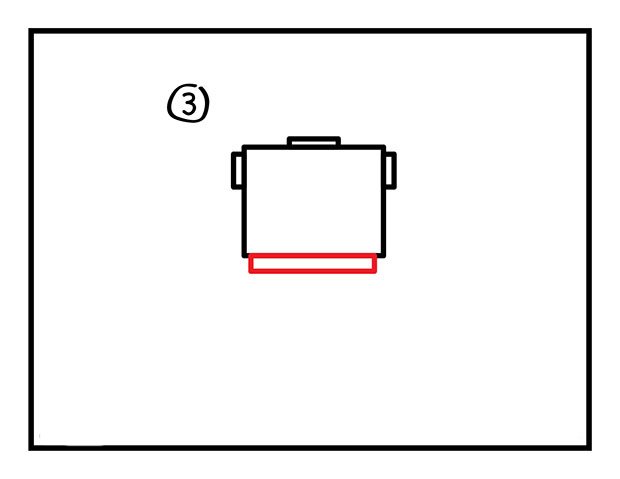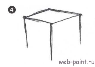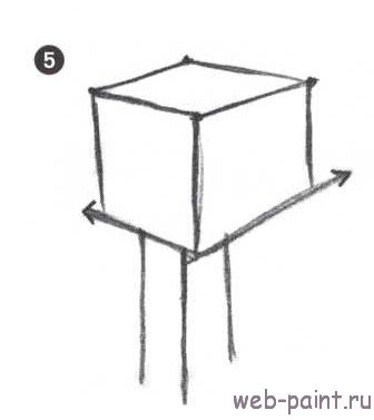 4. Убедитесь, что средняя линия нарисована чуть длиннее. Помните правило, что ближние объекты располагаются ниже на бумаге? Это закон расположения (чтобы освежить в памяти все основы, перейдите к статье « «). Поэтому чтобы нижний край коробки смотрелся ближе, нарисуйте среднюю линию чуть-чуть длиннее.