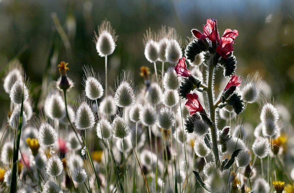 На участке зайцехвосту подходит соседство с неприхотливыми растениями, которые предпочитают бедную почву. Яркие цветы отлично смотрятся на фоне его бледной зелени, оживляя композицию.